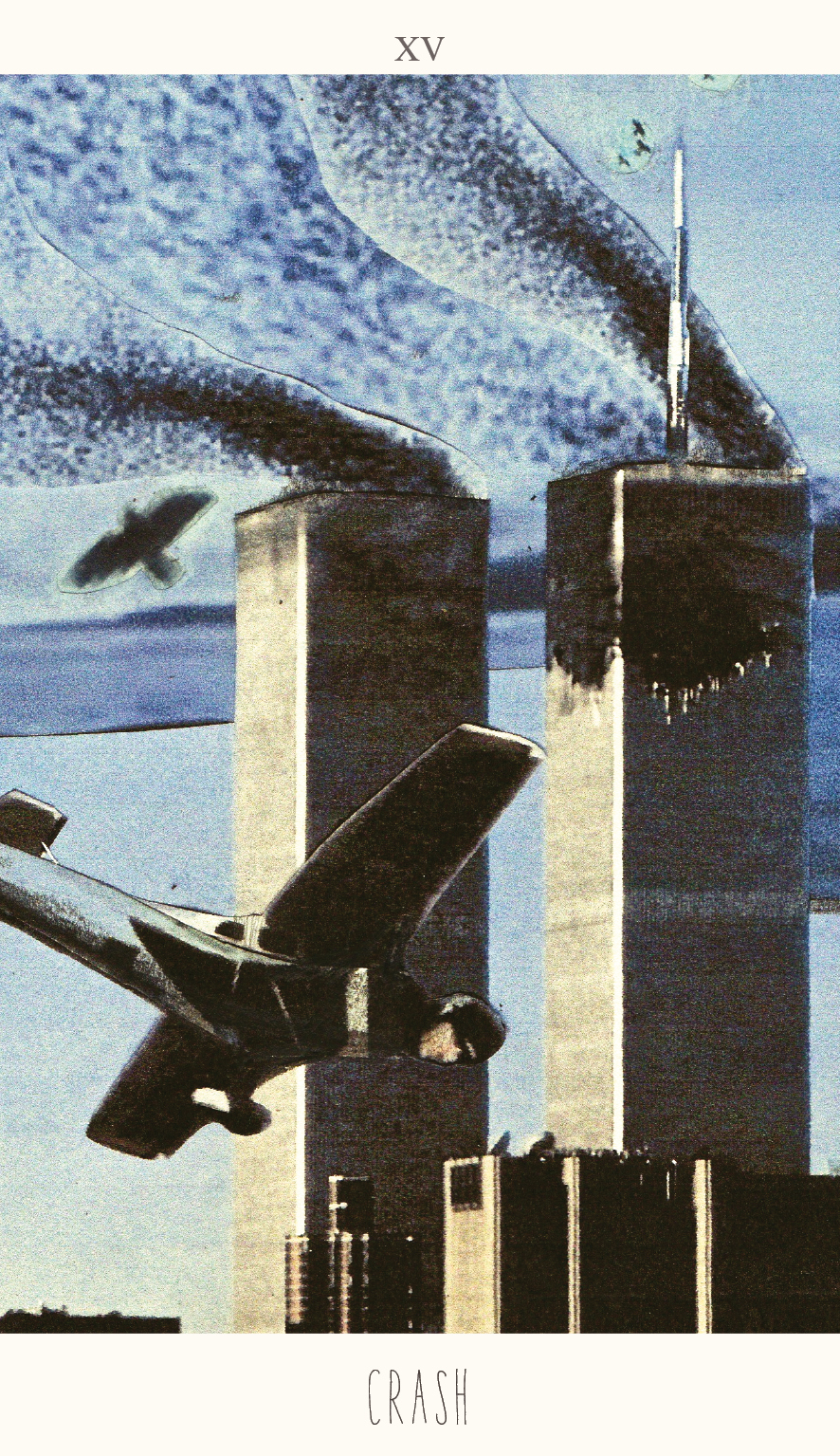 In Crash the outer signs of societal wealth, codified knowledge and culture, and political power are brought down to the ground, back to their basics. It is time for a change of the guards, or even better, for the disappearance of the guards altogether. The promise of Crash is a community-to-come that regulates its togetherness on the basis of a self-critical ethics of redistribution and glocal logics. If we look back to the previous card Alien, we can surmise that the Towers represent an architectural defence against an alien power flying in to destroy them. But like the human plane this Alien is no more than a projection of the shortcomings of the power house itself onto the outside(r). Instead of accepting their own vulnerability the Power Institutes have directed all their greed, aggression and violent drives onto an outside scapegoat, one often situated on the other side of the world, but sometimes also embodied by fellow-citizens following a different Path: coming from another culture, racial descent, historical affinity or sex.